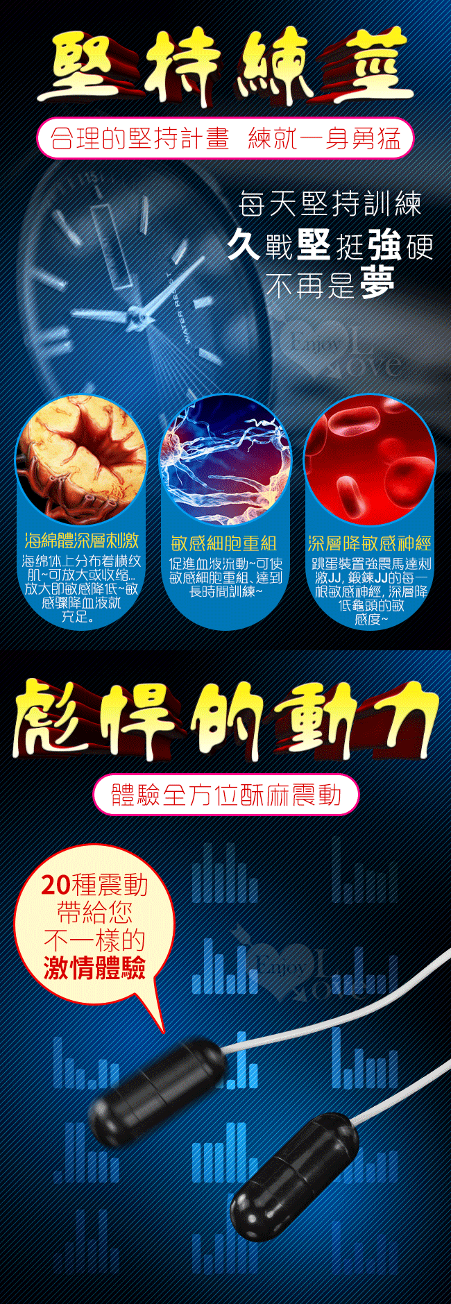 使用龜頭物理訓練原理搭配20段高頻震顫雙馬達震動360度對龜頭進行疏通按摩,從而達到長時目的。