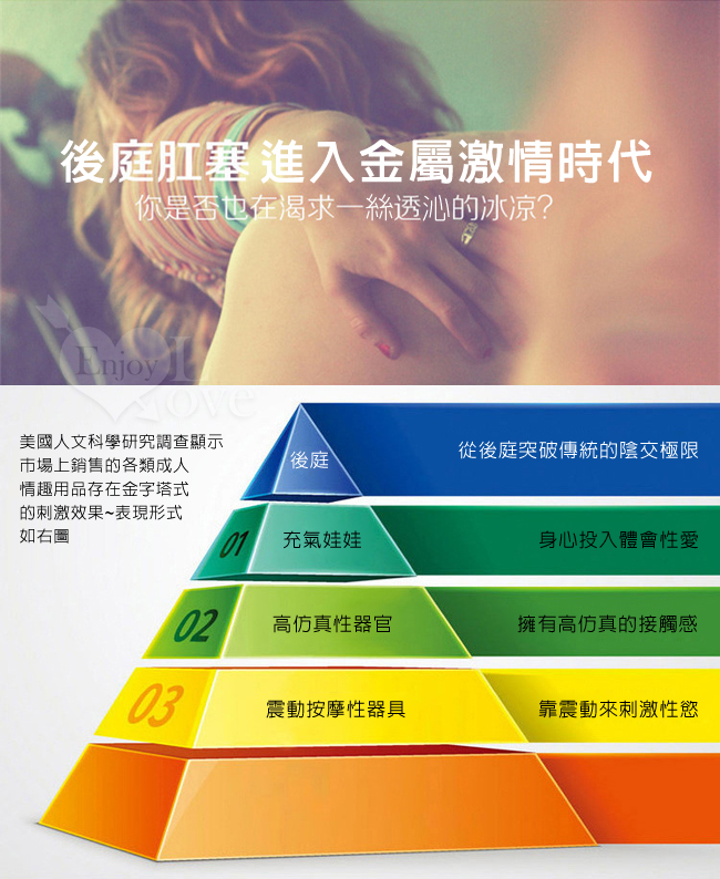 最火熱的閨房秘密,這專門為它設計的後庭聖品,可以隱密地整天戴著它,讓你貪婪地享受深入與擴張的快感,完美的曲線保持長時間的舒適,不銹鋼的冷冽觸與重力感,加強你的敏感神經。特殊的握把,在每次的進出都與生理結構細膩的結合著,加強著身體反應......