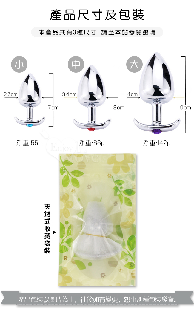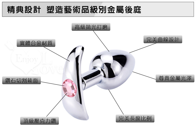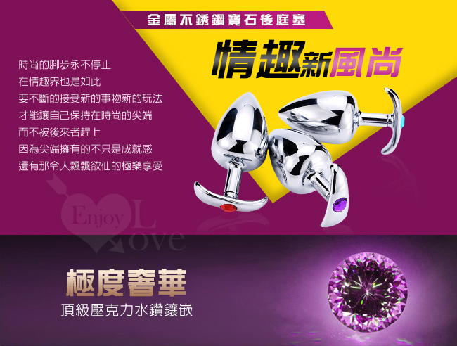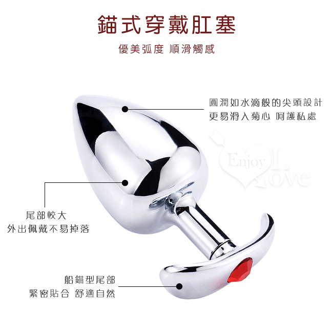 冰冰的、涼涼的,重重的,如此小巧的肛飾,是那麼的迷人。做工精美的迷你金屬肛栓(塞),表面光滑,稍微抹些水溶潤滑劑,即可推入後庭,非常適合後庭初用者,而尾部人造寶石裝點著底部,讓愛人看了立即深陷其中,欲罷不能。不銹鋼是溫度的優良導體,如果用冷/熱水浸泡後再使用,這種與體溫的差異會帶來令人意想不到的感覺。