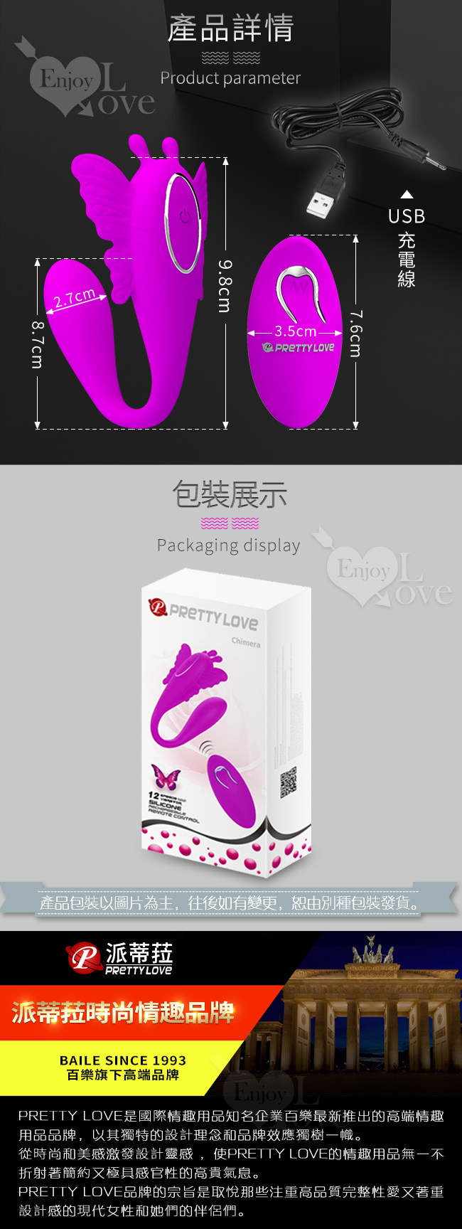 當前位置: 首頁 > 女性用品 > 多功能電動按摩棒 > 派蒂菈 ‧ Chimera 蝶戀花仙子 多功能按摩器﹝無線遙控+12頻雙頭震動+內外兼顧+男女共享﹞【特別提供保固6個月】