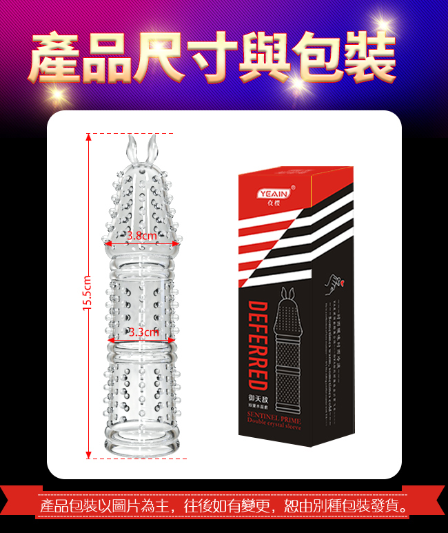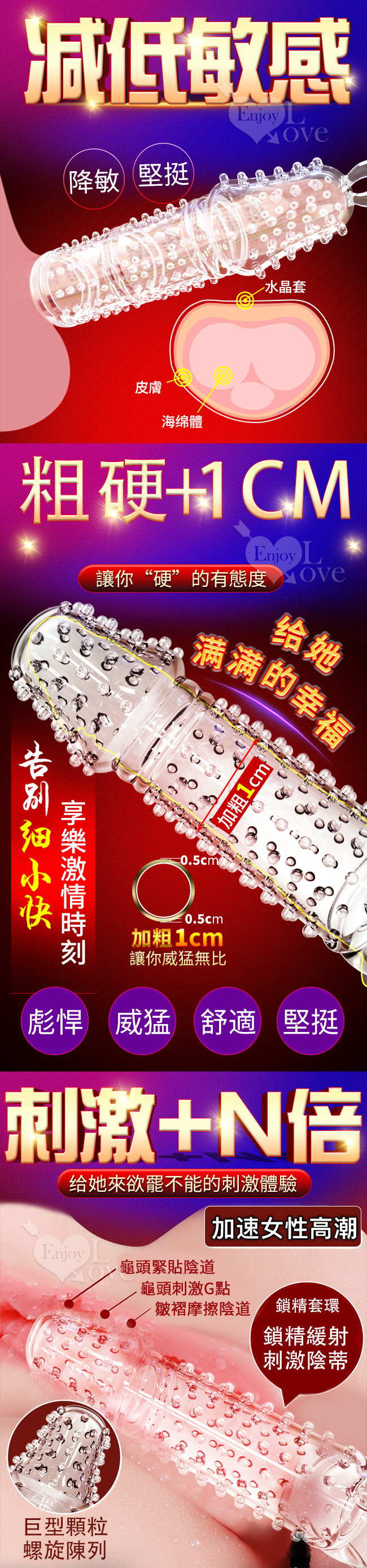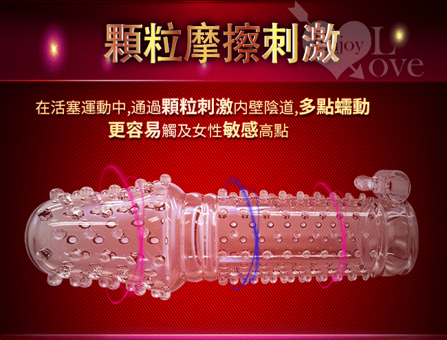 飽滿顆粒,刺激感強,和飽滿顆粒,刺激感強,和愛人愛愛時使用,讓您愛愛更持久,戰鬥力更猛。柔軟親膚,彈性好,在性愛過程中龜頭緊貼陰道,顆粒刺激女性陰道內壁,多點蠕動更容易觸及女性敏感點,讓她尖叫不停,流水不止,同時提升男士自信,增加愛愛新鮮感,促進夫妻情侶情感。