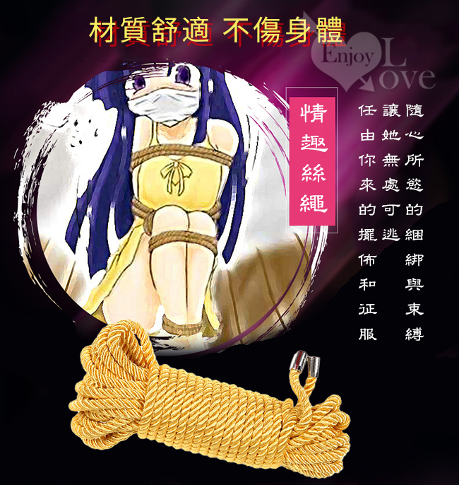 當前位置: 首頁 > SM情趣用品 > 身體束縛 > 【SM束縛情趣】金屬頭5米絲繩 SM調教捆綁束縛刑具繩子﹝金黃﹞