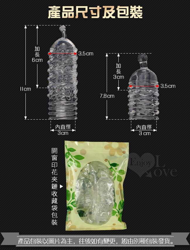 當前位置: 首頁 > 男性用品 > 猛男加強裝備 > Enjoy Love ‧ 1+1龜頭加長套 - 實心頂部柔珠+環紋凸粒磨擦 堅持不洩 強勁對待﹝長款+短款套裝組﹞
