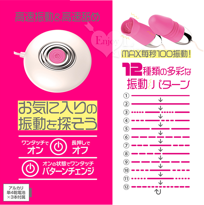 4.5Vの強力高性能モーターを内蔵し12種類の多彩な振動パターンで初心者から上級者まで楽しめます。