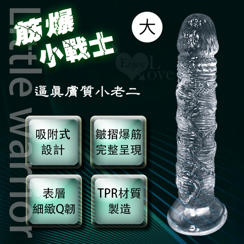 小戰士系列擬真按摩棒,採用頂級TPR材質熱塑而成,軟硬度適中,不會過硬而讓使用者使用時感到不適,也不會太軟,是經過市場問卷調查後採用最多數女性可以接受的軟硬度而設計,而外型連陰莖上的皺摺與爆筋都完整的重現,此系列共有4種規格,本站特別推薦它非常適合少女或陰道窄小者來使用哦!。