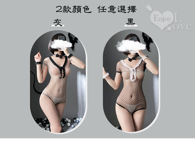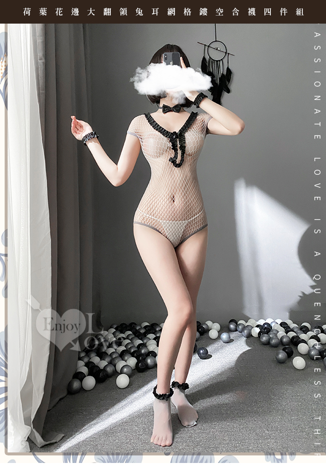 當前位置: 首頁 > 角色扮演服 > 貓裝/網衣 > 極性貓裝!荷葉花邊大翻領兔耳網格鏤空含襪四件式套裝﹝灰﹞