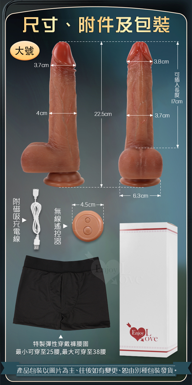 當前位置: 首頁 > 女性用品 > 女同志穿戴用品 > 強攻號角無線遙控版 ‧ 超高仿真Q彈肉感液態硅膠陽具+特製彈性穿戴褲﹝伸縮抽送撞擊+42°恆溫+磁吸充電﹞﹝大﹞【特別提供保固6個月】