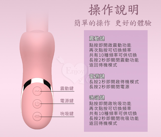 • 空氣壓力波吮吸和強力震動雙重刺激