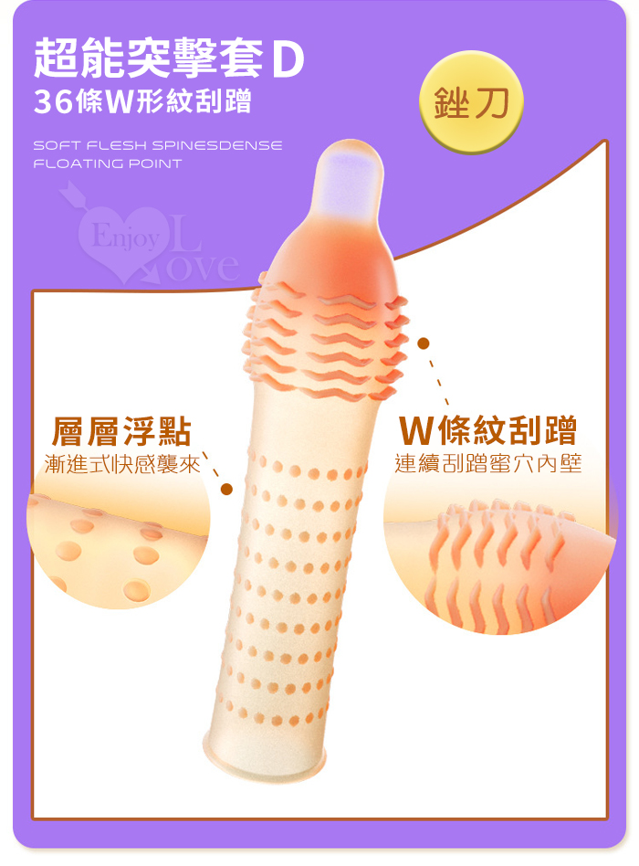 當前位置: 首頁 > 男性用品 > 猛男加強裝備 > Enjoy Love ‧ 超能突擊套D 36條W形紋刮蹭 輕薄裸入感浮點陰莖套﹝銼刀﹞