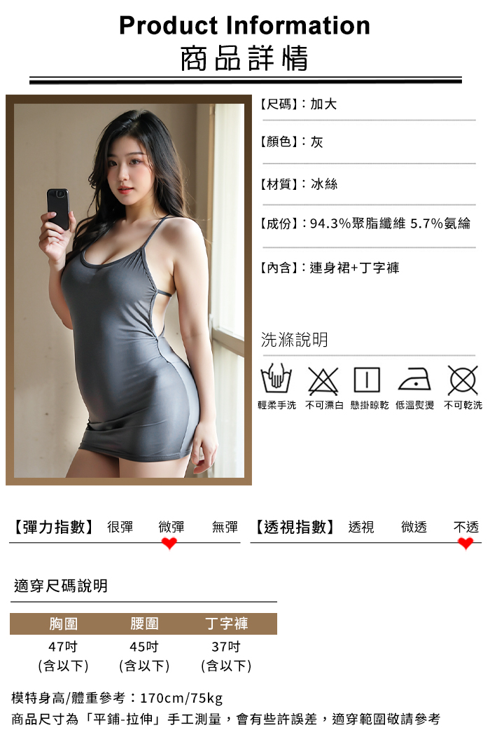 當前位置: 首頁 > 女性情趣內衣/褲 > 大尺碼專區 > 【棉花糖女孩】大尺碼情趣睡衣!冰絲低胸U領露乳放射美背包臀短裙兩件組