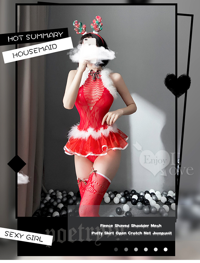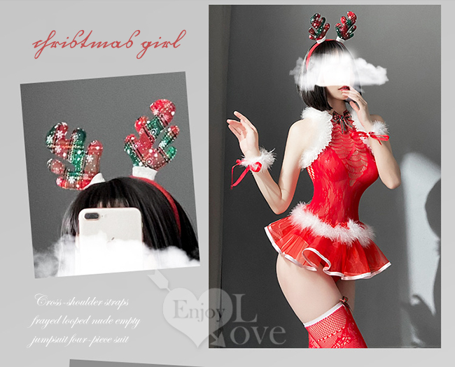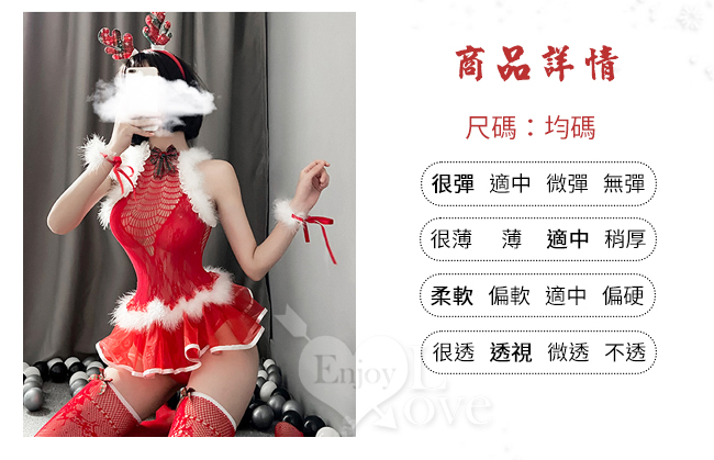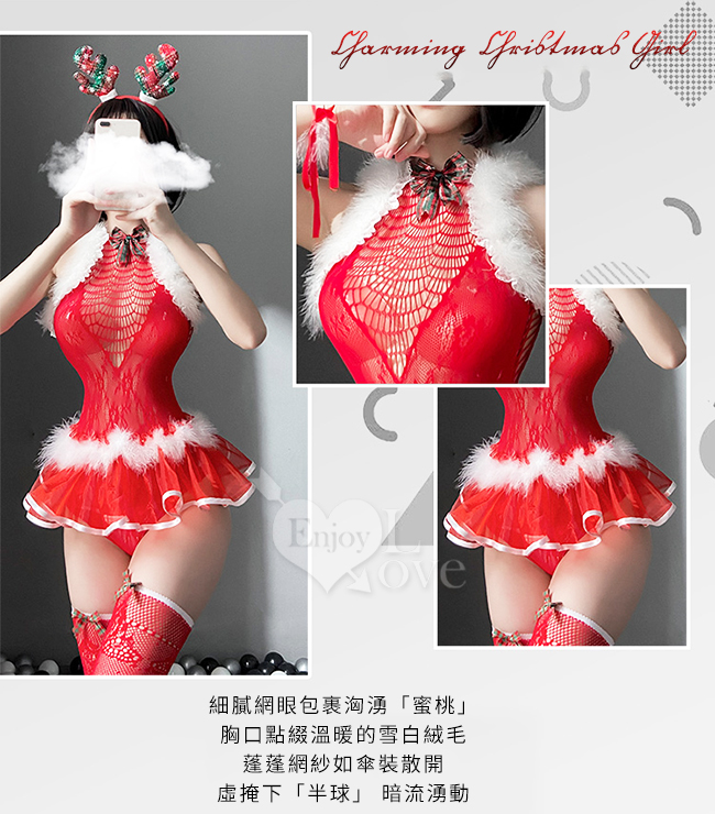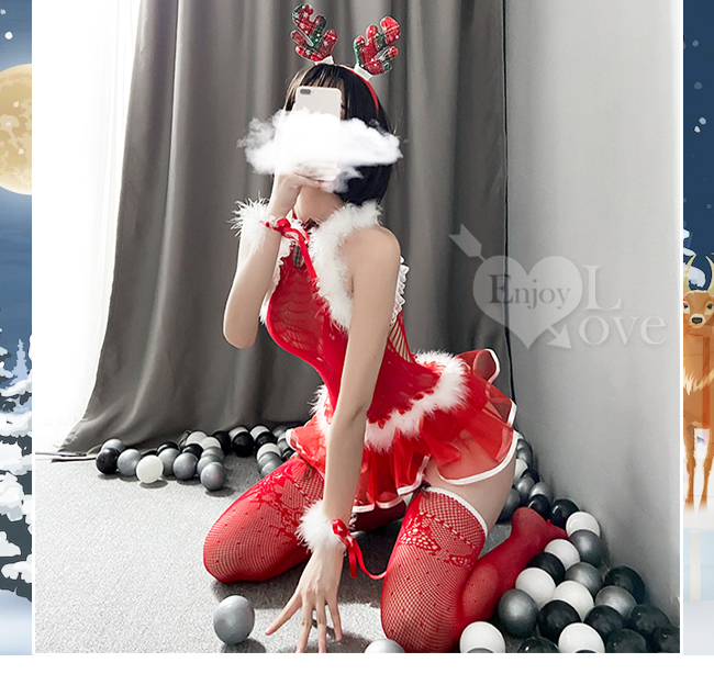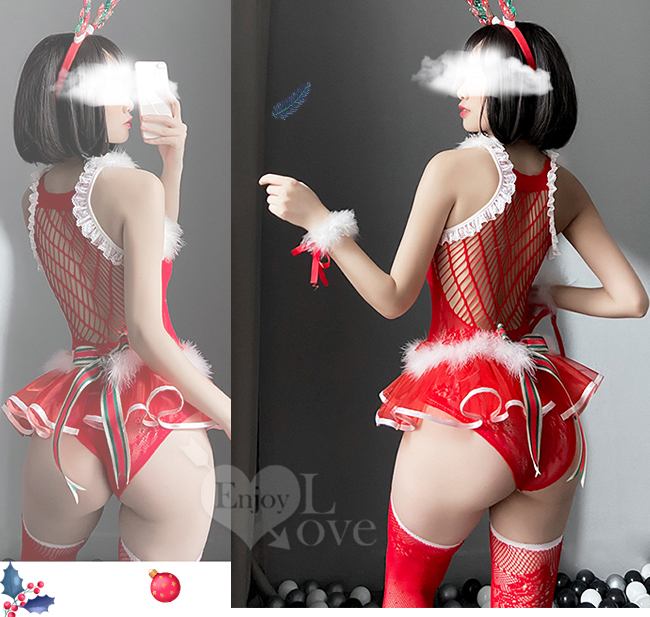 ※ 商品內容:麋鹿髮箍+領結+可開襠連身網衣+裙擺+手環*2+網襪。