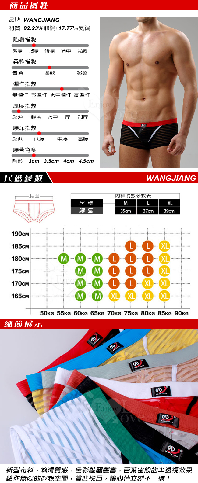 當前位置: 首頁 > 男士豪邁內衣/褲 > 平角褲/圓角褲 > 【網將WJ】條紋網紗半透明性感平口褲﹝黑 XL﹞