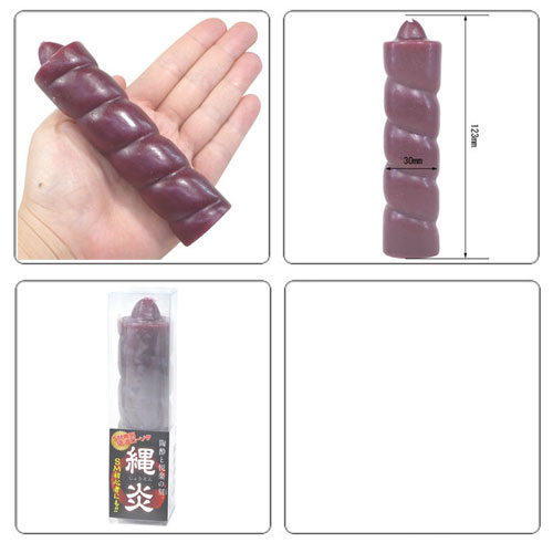 ソフトSM定番アイテムの低温ローソク「縄炎(小)(ちしぶき)」。初心者の方でいちどSM体験を!という方にはこの低温がオススメ。本当のローソクのようなねじりデザインと、グロテスクな血飛沫色が人気です。