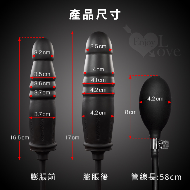 透過氣囊的作用,使膨脹擴張按摩棒增粗,讓你根據自己的喜好自由選擇它的大小,到達高品味的渴望與需求。專為你的不同需要而設計,上窄下寬的子彈型設計,內部堅挺有力,外表面光滑柔軟、氣囊的起伏讓器具更粗壯,輕你自由變換大小,體驗不同方位的性愛!尺寸:如圖示