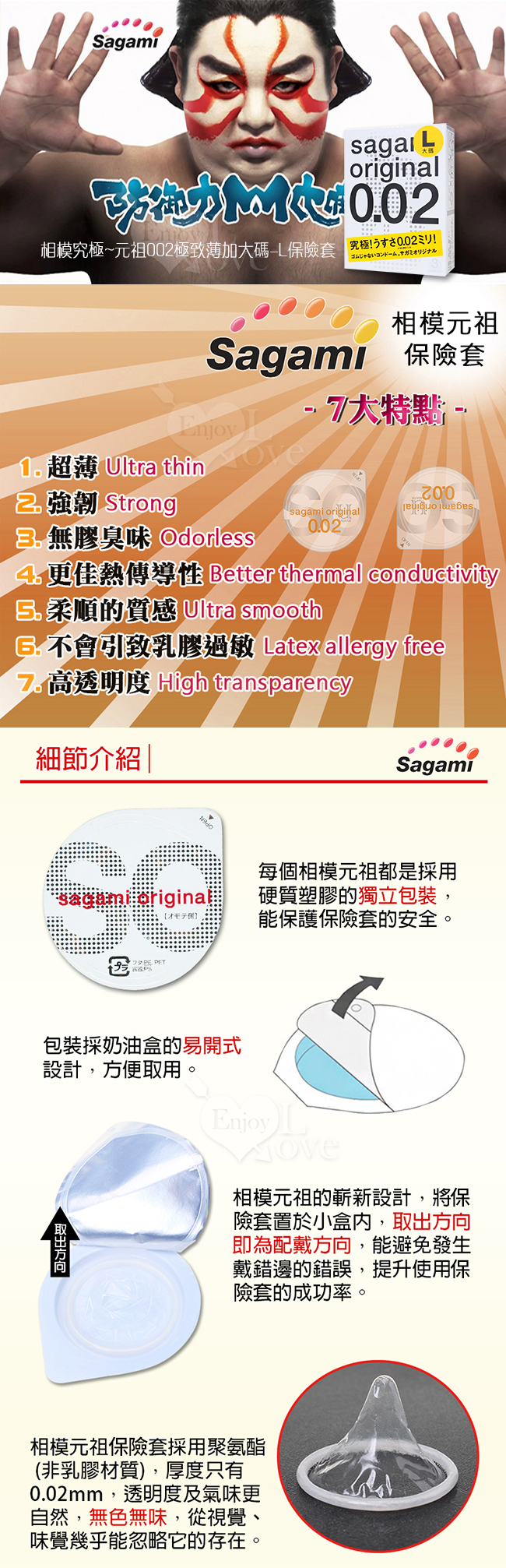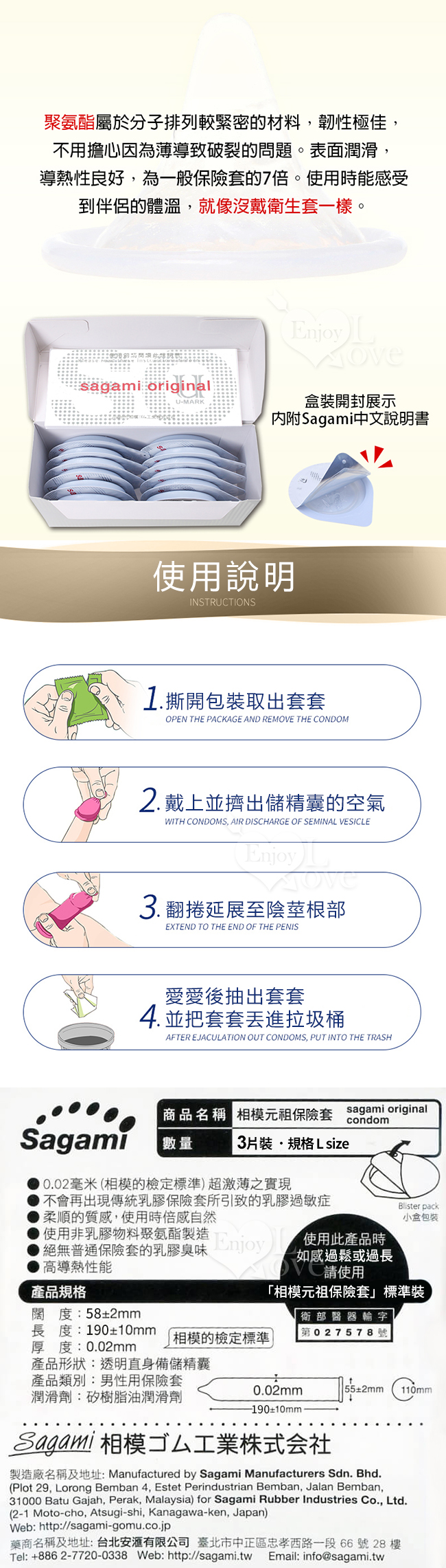 ◆ 商品品名:【相模Sagami】元祖002極致薄衛生套-L 3入