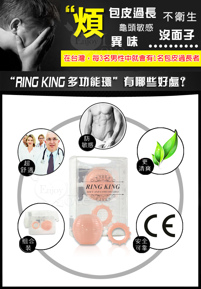 RING KING多功能環採用超軟虛擬膚質材料,帶上完全無異物感,不緊勒,針對不同時間段獨創日用+夜用套裝盒,更人性更舒適!