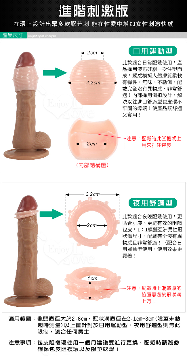 進階改良版,在環上設計出眾多軟膠芒刺,能在性愛中增加女性刺激快感。