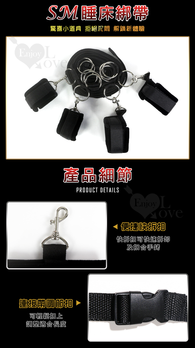 睡床綁帶(短絨毛版)可在床周圍建立各種各樣束縛方式,盡享性愛激情!