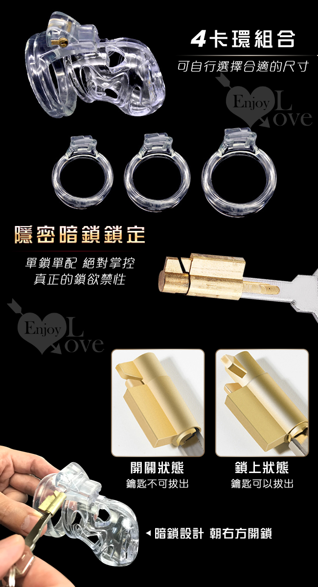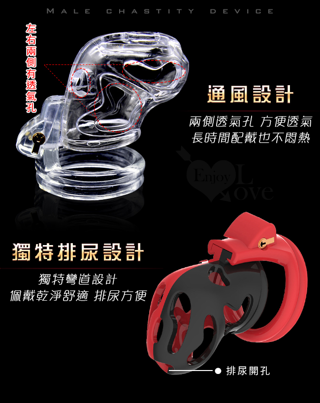 La Color設計團隊zui新創意,雙環造型完美的符合人體結構學特點。 geng貼合人體且不易逃脫,造型新穎的透氣孔設計大大減少了市面上其他貞操鎖長時間佩戴後所產生的潮濕悶熱感,給你的小鳥提供一個舒適的鳥巢。
