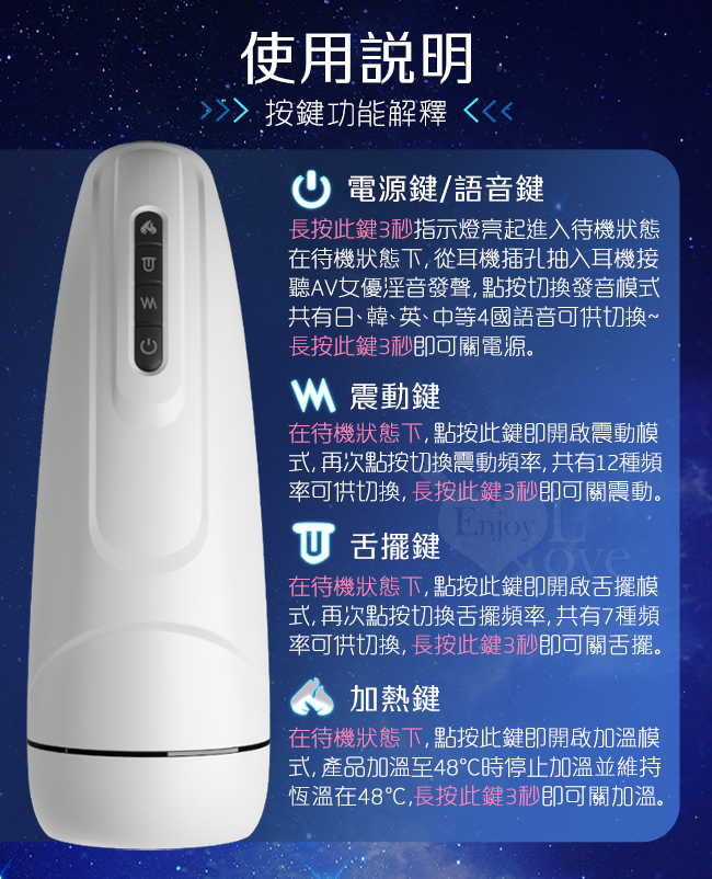當前位置: 首頁 > 男性用品 > 電動/震動自慰杯 > 派蒂菈 ‧ Marissa 瑪麗莎 三重智能加熱快感電動飛機杯﹝7頻舌擺X12頻震動+發聲耳機+USB充電﹞