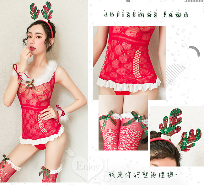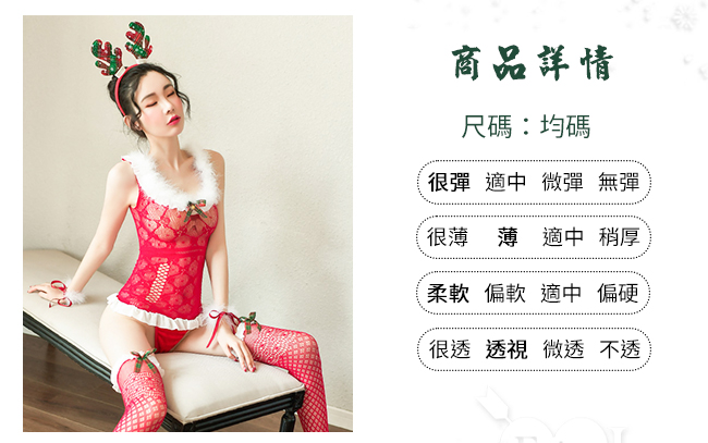 ※ 商品內容:麋鹿髮箍+網衣+手環*2+丁字褲+網襪。