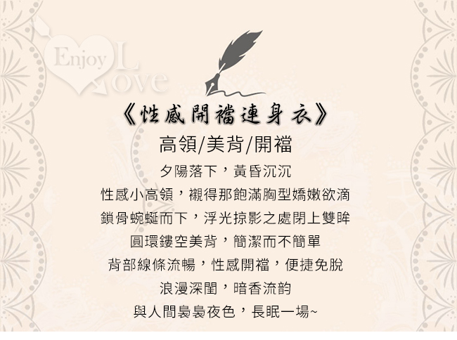 | 七天滿意鑑賞期: 據消保法規定,凡購買之消費者均享有商品到貨後七天(包含假日)鑑賞期之權益 ( ※鑑賞期非試用期 )。 鑑賞期係供您參考、觀賞、品鑑比較、如商品不如您預期想退貨時退回商品必須 是全新未拆封狀態,完整包裝及附件都需齊全,如有缺少或已使用過恕無法辦理退換貨程序。 基於保障消費者個人衛生,情趣衣物類恕不接受退換貨,如為商品本身暇疵,接受七日內換貨,且請勿試穿。 | ||