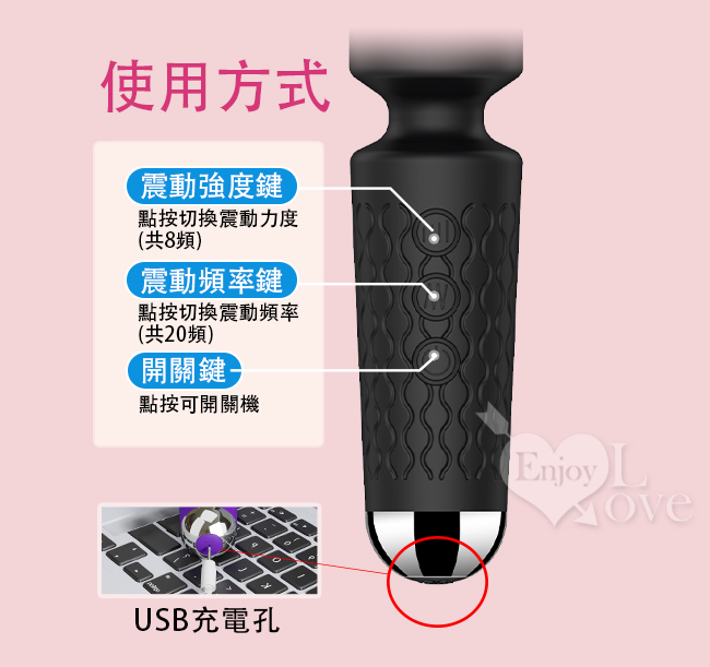 擁有20段變頻帶來20種銷魂刺8種震動強度讓快感層層疊進直到潮噴,讓您體驗多重節奏帶來的快感刺激!