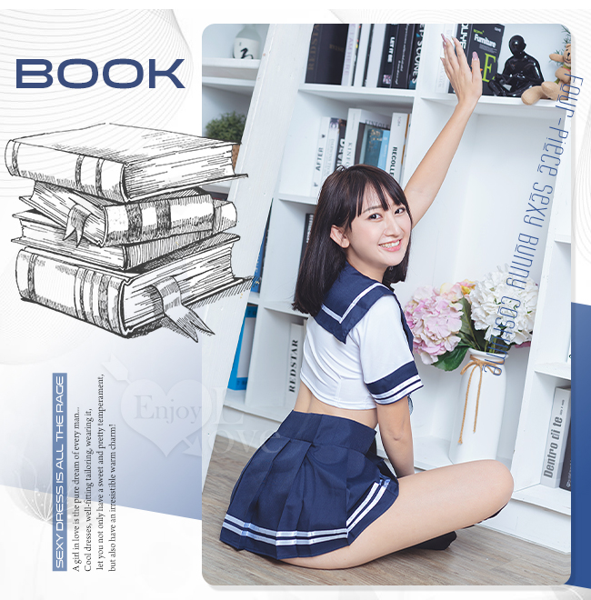 ※ 商品內容:上衣+短裙(魔鬼氈貼)+丁字褲+棉質長筒襪。