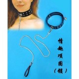 真皮製作,不銹鋼釘扣裝鉓。 項圈鬆緊可調。 項圈上有一個固定的不銹鋼環,連接有一根長約70cm的不銹鋼鎖鏈。 鎖鏈通過活動鎖扣可以解除。